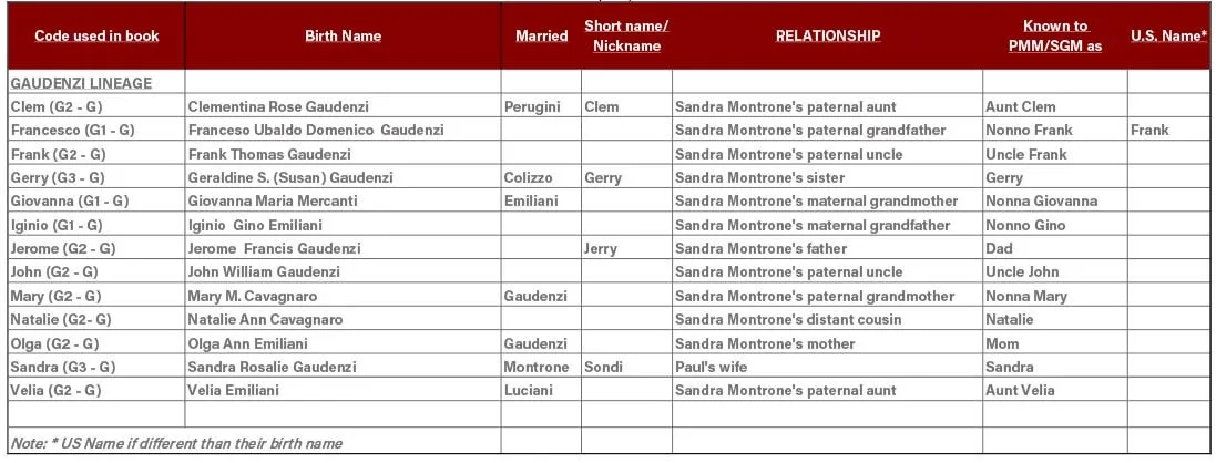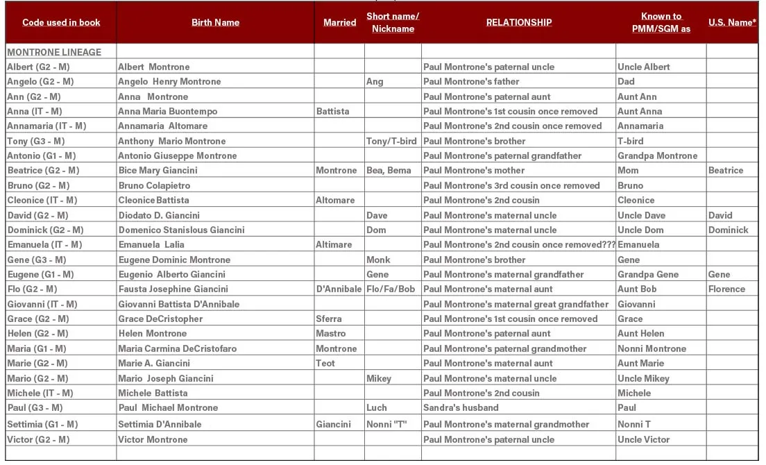 The “Roots Book” ANCESTORS OF PAUL AND SANDRA MONTRONE List of Frequently Used Names To close this window, click on small x on the right side of this tab.