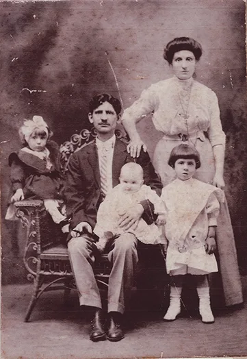 The DeCristofaro family lived for generations in Boiano in Italy’s Molise Region. In 1907, Paul’s grandfather, Antonio Montrone, who had gone to America in 1901, returned to Italy to bring back his bride, Maria DeCristofaro, who is standing to the right of her seated father Michele in the picture on the left. Antonio and Maria settled in Scranton, PA and had five children, including Paul’s father, Angelo Montrone. Maria’s brothers Domenic and Ernesto also came to America, where they married and had families. Maria’s sister, Concetta, stayed in Italy and became a nun. Three other children died in their youth.